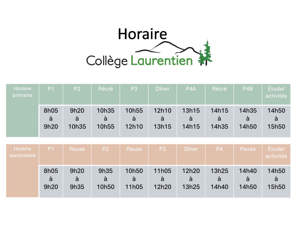 - 14 h 50 à 15 h 50 : Période d’étude supervisée ou activités parascolaires de 60 minutes (du lundi au jeudi).