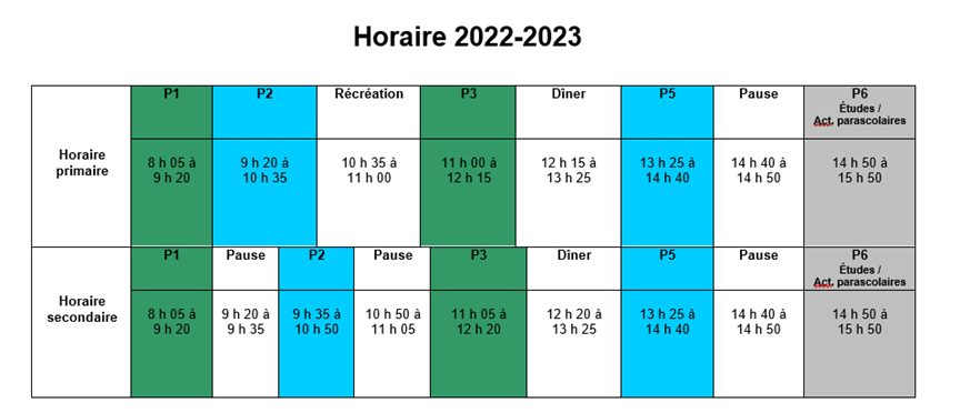 - 14 h 50 à 15 h 50 : Période d’étude supervisée ou activités parascolaires de 60 minutes (du lundi au jeudi).